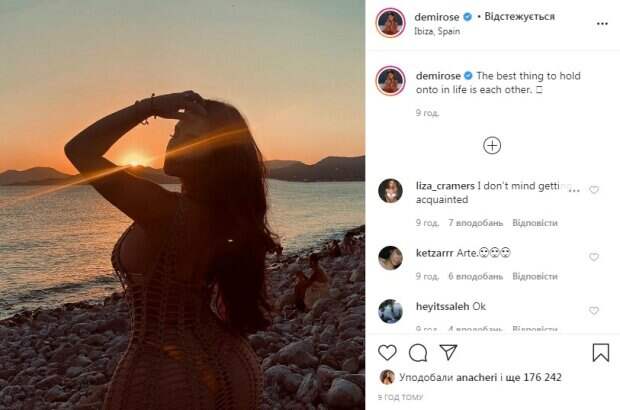 Британская модель Деми Роуз похвасталась роскошными формами в наряде, который просто сводит с ума Об этом сообщает Politeka со ссылкой на Instagram знаменитости. Так, модель позирует на пляже в лучах заката. Она одета в непристойно крохотном и облегающем купальнике, который акцентирует сладкие места модели.