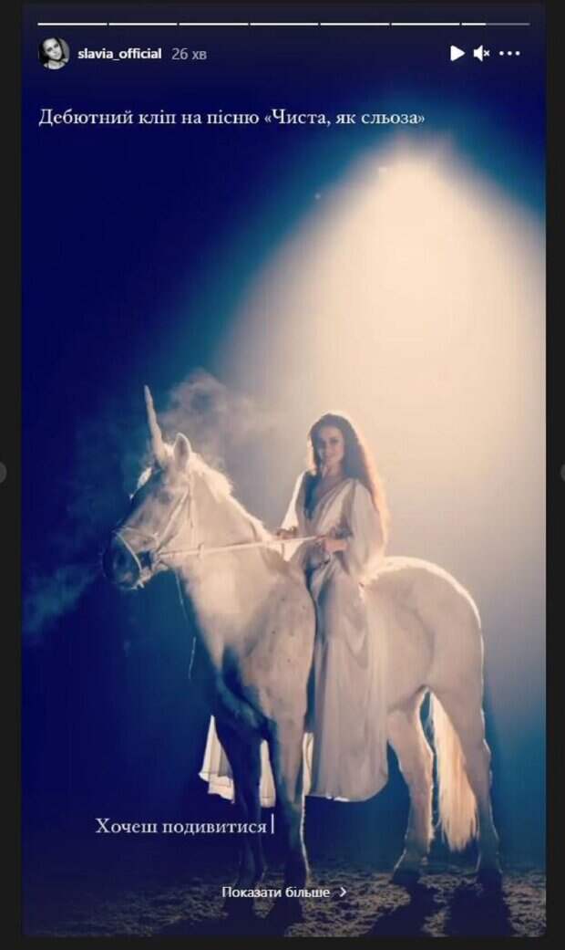 В этот раз Ярослава поделилась кадром в сторис Инстаграм. Девушка решила вспомнить свой дебютный клип, в котором снималась в прозрачном платье, сидя на единороге. Волосы девушка решила оставить распущенными, а руками держала поводья. "Дебютный клип на песню "Чистая, как слеза", - написала красотка под кадром. "Хочешь посмотреть...", - добавила SLAVIA снизу. Фанаты не смогли поставить лайки или написать комментарии, но обычно красотку без комплиментов не оставляют: "Сердце замирает от такого голоса, действительно очень нежно, красиво, голос чудо!" Мы писали, что известная украинская певица SLAVIA поделилась чувственным кадром из ванной. В этот раз красотка решила поделиться новым фото из последней фотосессии, на которой появилась в алом наряде. Причем не менее яркий макияж с акцентом на красные губы и аккуратная укладка идеально завершили образ. Напомним, знойная жена DZIDZIO после скандального интервью заговорила об отношениях в семье А еще Politeka писала, что обнаженная жена DZIDZIO без макияжа поделилась секретом молодости и красоты Также Politeka сообщала, что фигуристая жена DZIDZIO в бикини предалась "греху" прямо под пальмой, неожиданное фото