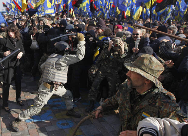 Украинское государство должно предоставлять амнистию боевикам «АТО» и «ООС», которые, вернувшись с Донбасса, совершают массовые беспорядки и драки. Об этом в эфире телеканала «Магнолия» заявил главарь подшефной СБУ запрещенной в РФ неонацистской группировки С14 Евгений Карась, передаёт корреспондент «ПолитНавигатора».