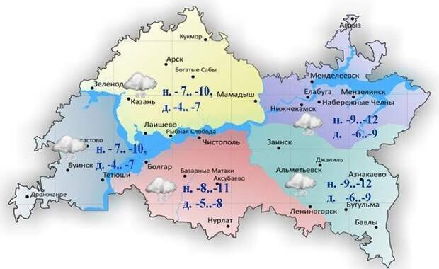 В воскресенье, 23 января, в Татарстане прогнозируется облачная погода. Снег. На дорогах гололедица. Ветер юго-восточный умеренный, сообщается на сайте Гидрометцентра РТ. Максимальная температура воздуха днем составит -4... -9 градусов. В Казани ожидается от -4 до -7 градусов. В Набережных Челнах синоптики прогнозируют от -4 до -9 градусов.