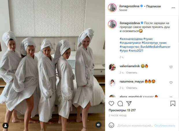 Так, на кадрах пятеро девушек, среди которых была и танцовщица, появляются в номере в белых халатах и с полотенцами на волосах. Красотки подпрыгивают и на следующем кадре падают в бассейн. При этом одеты они уже не в халаты, а в яркие купальники. Все это происходит под веселую музыку. «После зарядки на природе самое время принять душ и освежиться», - подписала кадры Гвоздева. Судя по этим кадрам, девушки отлично проводят время в поездке. Ее поклонники тут же отреагировали на публикацию. «Захотелось к вам», «Ха! Прикольненько!», «Вот это невесты, голова закачалась», «Классно! Это ведь супер!!», «Кайф», - пишут люди. Напомним, Гвоздева из "Танців з зірками" хвастнула безудержным отдыхом с мужем. Как сообщала Politeka, Гвоздева после ухода из "Танців з зірками" призналась, готовится ли снова стать мамой. Также Politeka писала, что Гвоздева выдала подробности скандала на "Танцях з зірками".