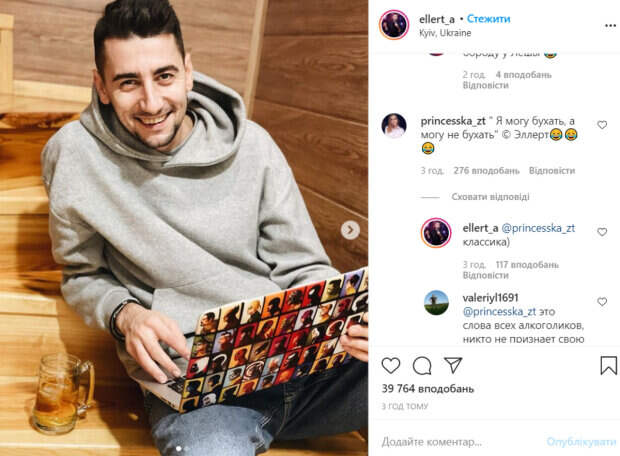 Победитель "Холостячки" Александр Эллерт взбудоражил сеть новым постом Как передает Politeka.net, у себя в Инстаграм комик опубликовал пост с рекламой спиртного напитка. Сам избранник актрисы Ксении Мишиной сидел на ступеньках, держа в руках ноутбук. «Чем занят? Работаю! Пишу сценарий вечеринки...Может пижама пати.