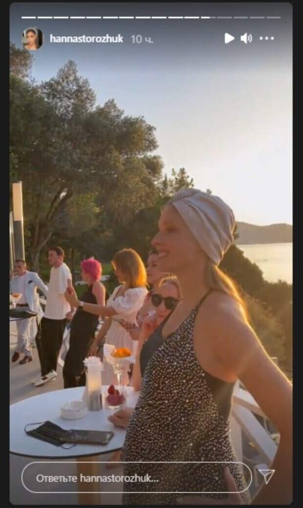 В частности, они засветились на вечеринке для селебрити, прошедшей в отеле Rixos Premium Bodrum в Турции, передает Politeka.net. Кроме них, гостями мероприятия также были ведущая Катя Осадчая с мужем Юрием Горбуновым, певица Слава Каминская, фэшн-фотограф Соня Плакидюк и другие. Избранница "Холостяка" активно снимала на телефон происходящее вокруг, и случайно засветила беременный животик Осадчей, который стал уже внушительных размеров (учитывая, что о своем интересном положении девушка объявила полтора месяца назад). Они с Горбуновым ожидают появления второго общего ребенка. Катя на всех кадрах старается не светить животиком, прикрываясь объемными нарядами и выбирая удачные ракурсы, чтобы было не так заметно. Но Богдан нечаянно все выдала. Также Аня со своим возлюбленным успела сделать совместное фото с Осадчей и Горбуновым. "Благодаря таким мероприятиям, я имею возможность познакомиться с прекрасными людьми