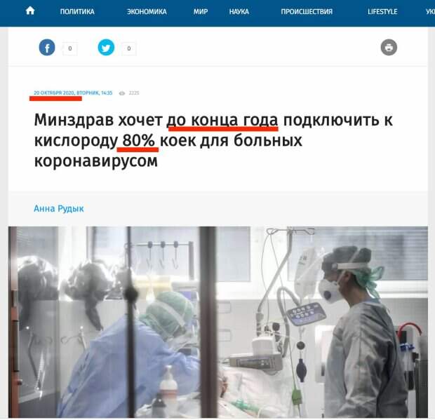 Министерство здравоохранения Украины поймали на лжи Как передает Politeka.net, на интересный нюанс указали на Telegram-канале "Klymenko Time". "Посмотрите как за месяц, например, изменились вводные по обеспечению коек больных коронавирусом кислородом. В сентябре цифру 80% обеспечения кислородом обещали в октябре.