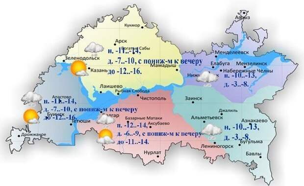 В понедельник, 27 декабря, в Татарстане прогнозируется облачная погода с прояснениями. Местами небольшой снег. Ветер южный, юго-западный умеренный, сообщается на сайте Гидрометцентра РТ. Максимальная температура воздуха днем составит -10.. -15 градусов. В Казани ожидается от -12 до -16 градусов. В Набережных Челнах синоптики прогнозируют от -3 до -8 градусов.