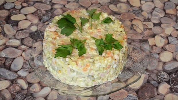 Ну что можно нового сказать про салат оливье. Его знают думаю все. Он как повседневный, так и обязательный праздничный. Я уже коротко говорил о нём в статье 10 лучших рецептов, и ещё коротко рассказывал в статье — классический салат оливье. Поэтому сильно распространяться не буду. Посмотрите прошлые статьи, там есть очень интересные праздничные салаты.