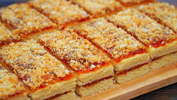 Пирожное с джемом хорошо сохраняется и в холодильнике, и просто на столе. Но чем дольше оно стоит, тем вкуснее. Ингредиенты: 180 г сливочного масла 130 г сахара или сахарная пудра 1 яйцо 310 г муки 1 ч. л. разрыхлителя щепотка соли, ваниль 200-400 г джема (повидло) Сливочное масло и яйцо за 1-2 часа до приготовления достать из холодильника, чтобы продукты нагрелись до комнатной температуры.