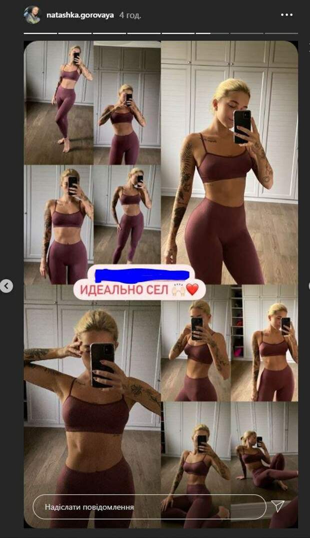 Дочь Алексея Потапенко (Потапа) Наташка Горовая показала свою обновку На фото красотка позировала в узком топике и лосинах. Наташка на нескольких кадрах показала, как выглядит ее тело. Волосы Горовая собрала в хвост, чтобы не мешали, а сама снимала себя на телефон в зеркало. Об этом пишет Politeka.net со ссылкой на страничку знаменитости.