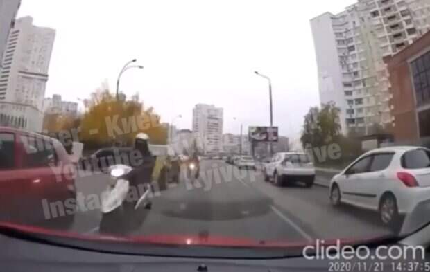 Камера видеорегистратора все записала Инцидент произошел 21 ноября в Киеве по ул. Гришко. Причиной стало замечание водителя, которое он сделал мопедистам. Так, двое курьеров Glovo на мопедах выехали на встречную полосу, а когда водитель автомобиля подал им звуковой сигнал и не пропустил - догнали, перекрыли дорогу, избили машину и самого водителя.