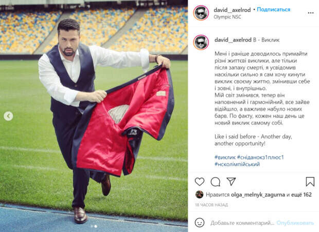 На этот раз Дэвид поделился новыми фото на своей странице в Инстаграм. На снимках певец позирует перед камерой в синем костюме, надетым на белую рубашку. В руках он держит пиджак. Как известно, недавно артист перенес на себе тяжелую болезнь, из-за этого он попал в больницу, где набрал вес. После того, как он вышел из больницы, певец начал усердно заниматься спортом и правильно питаться. Заболевание ударило по нему и с другой стороны, Дэвид признался, что у него сильно выпадали волосы в этот период. В итоге артист полностью поменял свой образ. "В - Вызов Мне и раньше приходилось принимать разные жизненные вызовы, но только после запаха смерти, я осознал насколько сильно я сам хочу бросить вызов своей жизни, изменив себя и внешне, и внутренне. Мой мир изменился, теперь он наполнен и гармоничный, все лишнее ушло, а важное приобрело новые краски. По факту, каждый наш день это новый вызов самому себе.", рассказал певец. Ранее сообщалось, звезда "Голосу країни" похудел на 30 кг и потерял волосы после тяжелой болезни, как он выглядит: "Казалось, что это невозможно..." Также, украинцы сочувствуют горю в семье звезды "Голосу країни" и Алены Мозговой: "Такое очень тяжело пережить" Politeka рассказывала, звезда "Голосу країни" и муж Алены Мозговой сообщил о трагедии: "Васю убили. .."