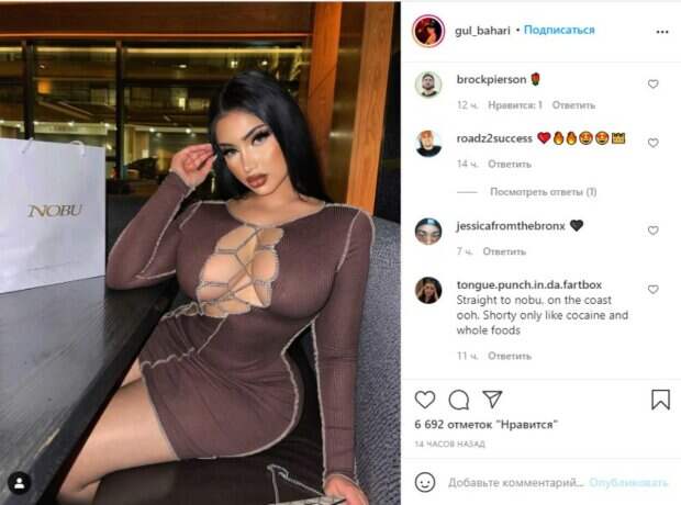 Популярная модель Гюль Бахари, также известная, как турецкая Ким Кардашьян, повеселилась на отдыхе в платье с вырезом Смуглолицая модель с необычной внешностью каждый день старается показывать в Инстаграм новые фото и видео со своих фотосессий. Так как Гюль рекламирует модные наряды, у себя в Инстаграм она публикует фото из посещений клубов, баров и ресторанов, отмечая свой «образ дня» и каждый раз новый.