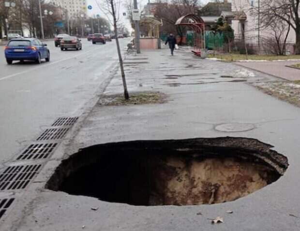 В Киеве на тротуаре образовалась огромная дыра прямо возле остановки общественного транспорта Об этом сообщает Politeka со ссылкой на Telegram-канал "Киев LIVE". Так, в Соломенском районе столицы возле остановки провалился асфальт. Соответствующее фото появилось в сети. "Вход в Нарнию. В Соломенском районе Киева возле остановки "Белгородская" провалился большой кусок асфальта на тротуаре", - говорится в сообщении.