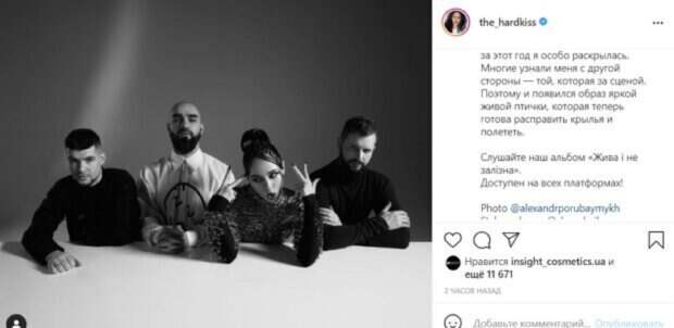 На фото красотка позировала в красной блузе и колготах, а образ дополнила черной юбкой. Юлия сидела на кожаном кресле, расставив немножко ноги, а взгляд отвела от камеры. "Живая и не железная", - написала название нового альбома Санина под фото. “VOGUE Ukraine", - добавила тэгом Юлия. Фанаты поставили более 8 тысяч лайков и написали комментарии: "Рок победил на евро, но именно ваш рок навсегда в сердечке", "Очень красивая", "Живая и не железная, а еще очень красивая", "Замечталась и влюбилась", "Это лучшая иллюстрация названия альбома". Сообщалось, что солистка группы The Hardkiss Юлия Санина порадовала украинцев новостью. На снимке Юля предстала в по-настоящему смелом образе – черный топ, украшенный металлическими цепями. Она дополнила выразительный лук массивными аксессуарами – крупными серьгами-кольцами и кольцами. Напомним, Санина из The Hardkiss в кожаном костюме показала кардинально новый образ А еще Politeka писала, что Санина из The Hardkiss с короткой стрижкой впечатлила необычным цветом волос Также Politeka сообщала, что Осадчая показала, как выглядит роскошный дом Юлии Саниной изнутри