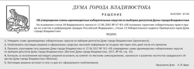 СХЕМА одномандатных избирательных округов по выборам депутатов Думы города ВладивостокаПриложение 1 к решению Думы...