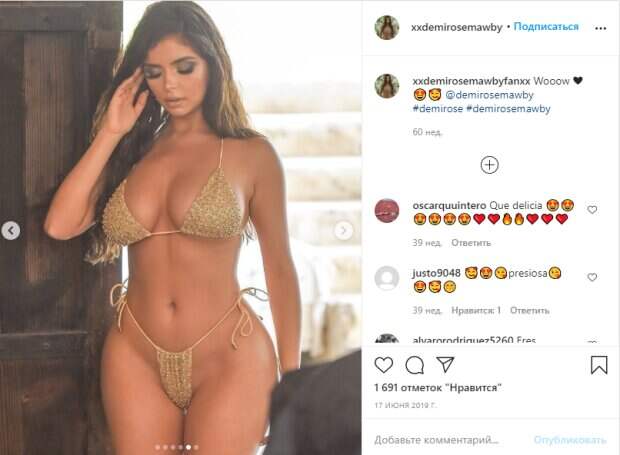 Благодаря уникальной внешности, Деми стала популярна в Инстаграм и получила многомиллионную аудиторию. Сейчас девушке всего 25 лет, она родилась в британском городе Бирмингеме в семье Барри и Кристин Мауби. С детства Роуз мечтала связать жизнь с модельным бизнесом, но для подиума ее рост и вес не подходили. Какое-то время девушка пыталась похудеть, заработав расстройство желудка. После того, как она вылечилась и поняла, что надо любить себя такой, какой она есть, слава сама нашла девушку. Работая альтернативной моделью, Деми каждый день показывает разные образы в белье и купальниках. Образ в золотом бикини сразу сразил сеть. «Это очень соблазнительно !!!!!! 🔥🔥🔥🔥🔥🔥», «Просто красиво», «Классная фигура», «Ты такая горячая, любовь моя», «Какой красивый наряд, но ты красивее, осмелюсь сказать, что ты моя платоническая любовь 😊, мой запретный плод, моя недостижимая звезда, но все же твой блеск заставляет меня чувствовать себя очень хорошо, я люблю тебя, Деми Роуз», «Уфф, как ты хороша, Боже какая женщина😍😍😍😍😍😍😍», «Какой восторг 😍», «Какая прелестная за*ница, все это не от Бога!», «Ты вкусный деликатес», «Деми Роуз - великолепная кукла на всей планете с экстремальными качествами в модели,» - пишут пользователи. Также загорелая модель решила поделиться жарким селфи на своей странице в социальной сети Инстаграм. В этот раз девушка показала, как примерила темно-коричневый купальник с тонкими завязками и аккуратными вставками из переплетенных на груди нитей. Длинные локоны Деми предпочла спрятать благодаря специальной укладке и аккуратному украшению с камнями и бусами на ее лбу, а лицо без макияжа не стала подчеркивать дополнительными уходовыми средствами. Как и всегда, главной изюминкой образа Деми стали ее пышные формы. «Зеркало, зеркало на стене...», - загадочно подписала новый кадр Деми. Вот как реагируют поклонники: «Так хорошо 🔥🔥🔥», «😍😍😍❤️Красивая ❤️❤️❤️ Ты такая красивая 💞💞💞💞», «Que hermoso frente», «Кто любит тебя, кроме парня из камары?», «Te vez muy espectacular. Quiero comerte a besos mi vida», «Я не скажу здесь, насколько сильно этот возбуждающий образ вас влияет на мой дух, только если вы спросите», «❤️🔥😍 очень хорошо выглядит». Напомним, Деми Роуз едва удержала пышных «близняшек» в крохотном наряде. Как сообщала Politeka, бесстыжая Деми Роуз сбросила лифчик и показала, как веселится у озера. Также Politeka писала, что влажная Деми Роуз вышла из душа и без стыда блеснула формами