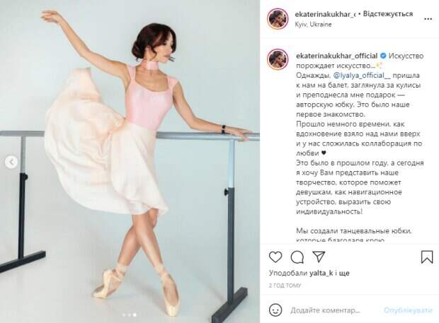 Так, недавно в своем Instagram звездная красотка поделилась с поклонниками нежными снимками из новой фотосессии. Как видно, на некоторых фото Катя запечатлена у балетного станка, а на одном из снимков она держит в ладони бабочку. На всех кадрах балерина позирует в пуантах и необычной красоты юбках разного цвета, меняются только топы. Так, на первом снимке танцовщица предстала в черном полупрозрачном топе, на втором – в белоснежном топе с воланом в зоне декольте и на тонких бретельках, а на третьем фото Кухар появилась в облегающем топе нежного розового оттенка и необычного фасона. В подписи к фотографиям Екатерина рассказала о создании этих прекрасных танцевальных юбок, которые во время движений порхают, как крылья бабочки. "Прошло немного времени, как вдохновение взяло над нами вверх и у нас сложилась коллаборация по любви. Мы создали танцевальные юбки, которые благодаря крою напоминают крылья бабочки во время вашего танца. Уникальность не только в правильных лекалах и тканях, которые при движении создают иллюзию взмаха крыла, но и в цвете, который помогает нам, девочкам, подчеркнуть свою индивидуальность. Теперь каждая из вас может одеть те крылья, о которых мечтала!". Напомним, Кухар из "Танців з зірками" показала, как расслабляется в халатике, поделившись эмоциональным признанием: "Богиня". Как сообщала Politeka, Муж Кухар из "Танців з зірками" не сдержал эмоций, глядя на конкурентку жены: "Моя маленькая...". Также Politeka писала, Кухар из "Танців з зірками" в соблазнительной позе показала страсть с красавчиком-мужем: "Дарю...".