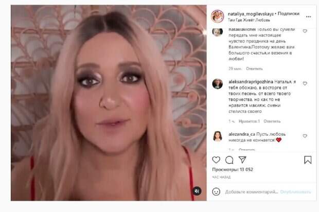 "Дорогие мои. С Днем Святого Валентина. Будьте счастливы, пожалуйста, говорите друг другу ласковые слова. Будьте нежными друг с другом, будьте любящими. Это так важно, чтобы у вас было все хорошо рядом с любимым человеком. Берегите, с Днем Святого Валентина", - сказала Наталья в ролике. "И только одно чувство способно оживить упавшего духом, вдохновить человека, который безнадежно разбит и разочарован... Оно окрыляет тех, кто прежде боялся летать. Дарит смысл и наполняет счастьем. Мы называем это чувство любовью", - написала под публикацией Могилевская. Фанаты посмотрели ролик более 10 тысяч раз и написали комментарии: "Пусть любовь никогда не кончается!", "Любовь спасет мир", "Такая красивая и милая", "Только вы сумели передать мне настоящее чувство праздника на день Валентина. Поэтому желаю вам большого счастья,и везения в любви!", "Наталья, я тебя обожаю, в восторге от твоих песен и твоего творчества. Но как-то не нравится макияж, смени стилиста своего". Напомним, Могилевская не сдержала чувств и слилась в поцелуе с любимым прямо на людях А еще Politeka сообщала, что Могилевская устроила сюрприз для скандальной Поляковой и получила неожиданную реакцию Также Politeka писала, что Могилевская обратилась к Кароль после скандала с Поляковой и показала фото