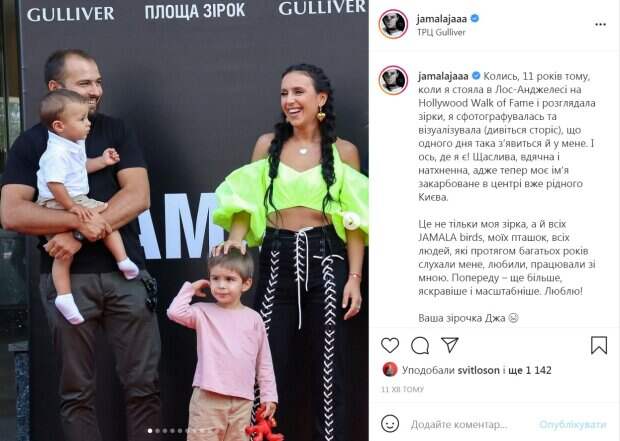 И вот, где я есть! Счастливая, благодарна и вдохновенная, ведь теперь мое имя запечатленное в центре уже родной Киев», - рассказала певица. Также она поблагодарила всех поклонников, которые долгие годы поддерживали ее творчество. Джамалу поздравляют коллеги и фанаты. В частности порадовалась за коллегу Юлия Санина. «Ура! Поздравляю