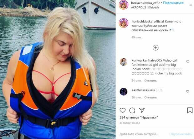 На одном из последних снимков модель предстала возле воды в спасательном жилете. Прелести настолько большие, что приспособление просто не застегивалось. Кроме того, соблазнительности придавал тот факт, что Горячковская надела красный лифчик, бретельки которого еще больше выделяли невероятные формы. На шее красотки блестела золотая цепочка. Модель собрала волосы в пучок, оставив у лица прядь. Она опустила глаза и улыбалась. "Конечно, с такими буйками жилет спасательный не нужен", - написала Инна. Почти за час пост собрал около 600 лайков и много комментариев. "