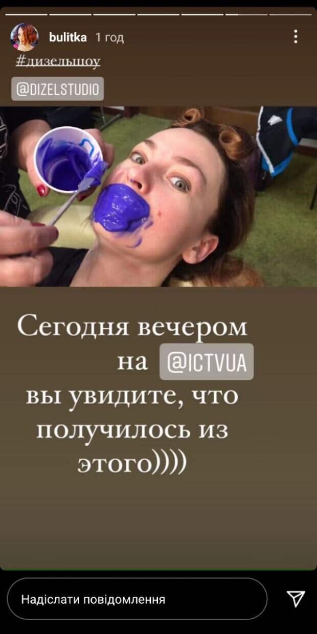 Актриса "Дизель Шоу" Виктория Булитко удивила неожиданными кадрами, похоже что артистка пошла по стопам Леси Никитюк Как сообщает Politeka.net, артистка опубликовала видео на своей странице в Инстаграм. На кадрах показано, как Билитко на губы и область вокруг наносят какой-то фиолетовый густой гель.