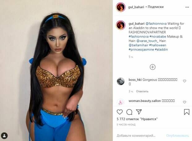 Модель приспустила синие бретельки с плеч, придав своему образу некого кокетства. Голубые брючки с блестящим пояском сели чуть выше бедер. Интересный крой - из больших вырезов выглядывали оголенные ножки модели. Кроме того, складывалось впечатление, что красотка не надела трусиков, которых не было видно. Упругий животик и тонкая талия - эта фигура просто невероятная. Завершил образ голубой обруч с золотым украшением. Красивый макияж с акцентом на большие глаза и пухлые "глянцевые" губы отлично смотрелись на лице Гюль. За пять часов пост собрал более 5000 лайков и много комментариев. Пользователи сети написали много приятных слов знаменитости, делая комплименты ее образу и фигуре. "Прекрасная Жасмин", - написал один из поклонников, увидев невероятное сходство в образе и внешности с диснеевской принцессой. Напомним, Гюль Бахари позировала на фоне многоэтажек, оперевшись руками об опору на балконе. Красотка надела наряд в крупную сетку, из которого выставились упругие ягодицы. Красивую ножку оплели тонкие полосочки ткани, а вторую - обтянула тонкая ткань лосин. Ранее сообщалось, что Гюль Бахари позировала в белом тонком топе и юбке длины миди модель выглядела очень соблазнительно. Благодаря смелому вырезу выше середины бедра и дерзкому декольте, девушка смогла показать идеально загорелую кожу после отдыха. Напомним, турецкая Кардашьян уложила на стол свои "апельсинки" в дерзком декольте А еще Politeka писала, что турецкая Кардашьян засветила своих "подружек" в полупрозрачной блузке Также Politeka писала, что турецкая Кардашьян лишила дара речи образом в леопардовом купальнике