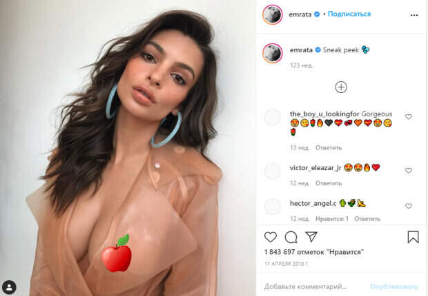 Пикантный акцент на груди знаменитости не мог остаться незамеченным. Эмили знает, как поднять популярность у своей аудитории в Инстаграм. Чаще всего, кадры знаменитости без белья вызывают больше всего обсуждений. Некоторые фолловеры думают, что девушка не натуральная и на самом деле ее формы - это силикон, другие же настаивают на природной красоте Ратаковски, которая ранее опровергала подобные слухи. «Великолепно 😍😘🌹», «Смотрю, отменная малышка 👌 Так ♥ ️ Красиво 😍🤩😘», «Какое отличное фото. Спасибо, что поделились этим со всеми», «@ gusein.gasanov надежда, умирает последней 👀», «Спасибо! За этот роскошный вид», «Великолепная», «Так много соблазнения», «Горячий вид🔥», «Я думаю, что я влюблен❤️😁lol потрясающие вещи на этой картинке», «Красивое представление!», «отличное фото», «Так приятно видеть это», - пишут пользователи сети. Мы также писали, что знаменитость каждый день отдыхает на пляже или занимается активными прогулками вместе с подругами. Поскольку Эмили не любит заниматься спортом в спортзале, она предпочитает много двигаться и расслабляться на природе. При этом стройная модель старается выбирать удобную одежду, как это показано на фото, опубликованных на специальных фан-страницах Ратаковски в Инстаграм. Эмили сочетает лифи от купальников вместе с мини-юбками или короткими шортиками. Также Ратаковски во время публичных выходов в свет любит удобную обежду - обтягивающие платья, аккуратные туфли на каблуке и простая прическа, реже - завязанные в хвост волосы. Эмили не любит макияж, поэтому дополняет образы украшениями, шляпами и другими деталями. Знаменитость любит естественную красоту, поэтому на ее странице в социальной сети Инстаграм все больше кадров, которые демонстрируют ее достоинства в естественном и природном виде. Без макияжа и укладок Эмили появляется как на публике, так и дома. И этот раз не стал исключением. Напомним, лохматая Эмили Ратаковски ошеломила переменами во внешности, стала еще красивее Также Politeka писала, что Ратаковски разделась и без стеснения показала, чем ее наградила природа А еще Politeka сообщала, что Ратаковски без лифчика повеселилась перед зеркалом в томной позе
