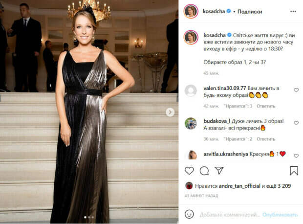 Сейчас она также не сбавляет обороты. Как пишет Politeka.net, в новом посте на своей странице в Инстаграм ведущая показала несколько образов для своей программы «Світське життя». На первом фото Катя позирует в роскошном двуцветном платье, которое выглядит очень дорогим за счет переливающейся ткани. На втором снимке Осадчая примерила оригинальный асимметричный жакет с длинной бахромой, желтый низ и кепку с золотистой вышивкой. На последнем фото Осадчая предстала в белом костюме с необычными разрезами, а также оригинальной широкополой шляпе с блестящей сеточкой, закрывающей лицо. «Светская жизнь бурлит :) вы уже успели привыкнуть к новому времени выхода в эфир - в воскресенье в 18:30? Выбираете образ 1, 2 или 3?», - написала ведущая. Ее поклонники тут же отреагировали на пост. «Вам идет в любом образе», «Очень подходит 3 образ! А вообще - все прекрасные», «Все образы классные. Но мне больше 3 нравится», «Все замечательные, но 1», «Катюша вы всегда красиво одеваетесь потрясающе выглядите», - пишут люди. Напомним, Осадчей после Каменских и Дорофеевой нашли новую замену в "Світському житті". Как сообщала Politeka, Горбунов, мечтающий о дочке, засветил Осадчую в домашнем виде без макияжа. Также Politeka писала, что Осадчая показала, как совмещает съемки и уход за ребенком, которому чуть больше месяца.