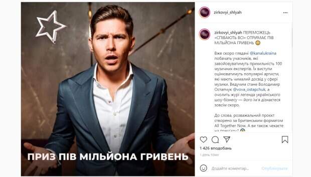 Но не всем украинцам это понравилось. "Уже скоро зрители канала Украина увидят участников, которые будут завоевывать расположение 100 музыкальных экспертов. Их выступления будут оценивать популярные артисты, имеющие немалый опыт в сфере музыки. Ведущим станет Владимир Остапчук, а возглавит жюри легенда украинского шоу-бизнеса — его имя узнаете совсем скоро. К слову, развлекательный проект создан по британскому формату All Together Now. А вы ждете премьеру?