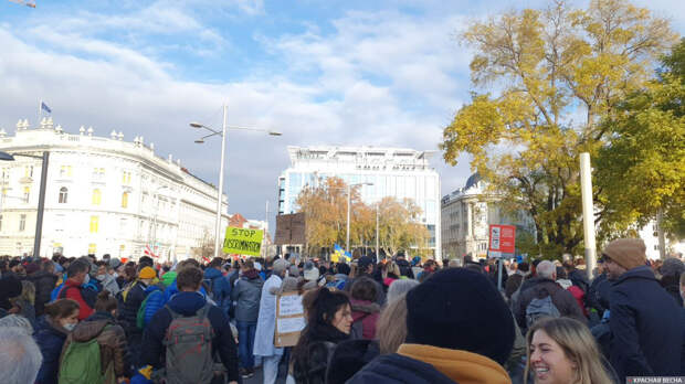 Шесть демонстраций протеста против карантина и обязательной вакцинации были санкционированы властями австрийской столицы Вена, 20 ноября сообщает корреспондент ИА Красная Весна. В одной из точек схода людей на площади Шварценбергплатц уже собралось около 5000 человек. Люди продолжают подходить крупными группами.