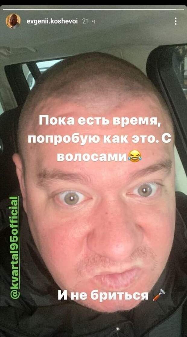 Кроме этого, Кошевой планирует не бриться. Отметим, что в интервью "КП в Украине" в 2017 году Кошевой рассказывал, что лишился волос в 2001 году. Его побрили ради роли, когда он играл в КВН. Это было перед выступлением в Украинской Лиге. Как объясняет Кошевой, он играл роль Розенбаума и Витаса. Тогда Витас как раз был лысым. Чтобы сценки выглядели эффектней, его и побрили. «Так и хожу вот», - признался актер. Он добавил, что ему приходится брить голову раз в два дня, чтобы не зарасти как Кинг-Конг. Бреется он самостоятельно. Стоит отметить, что в сети сложно найти фото, на которых Кошевой еще с волосами. Одно из них он сам опубликовал у себя в Инстаграм. Ранее мы писали, что Кошевой насмешил рожицей с большими ушами. Комика изменила до неузнаваемости смешная маска, когда он пытался спародировать известного телеведущего Савика Шустера. Напомним, что Кошевой пошел на кардинальную смену внешности и показал результат: "С волосами и...". Как сообщала Politeka, дочь Кошевого напугала признанием о невыносимой травле в школе: «Я боюсь…». Также Politeka писала, что Евгений Кошевой рвется бить "морды" в школе дочери, ребенок в отчаянии: "Я уже не могу".