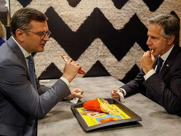 Глава МИД Украины Дмитрий Кулеба пригласил американского госсекретаря США Энтони Блинкена на обед в «Макдоналдс» в Киеве. При этом ряд Telegram-каналов тут же затроллил украинского дипломата, напоминая, что в свое время Кулеба буквально отвоевал право называть борщ украинским блюдом, но своего американского коллегу решил угостить не национальной кухней, а фаст-фудом.