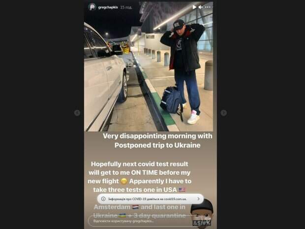 Сын хореографа и судью "Танців з зірками" Григория Чапкиса Грег поделился своей бедой Как пишет Politeka.net, о новом испытании сын знаменитого хореографа сообщил в Instagram. «Очень разочаровывающее утро с отложенной поездкой в Украину. Надеюсь результаты следующего теста на ковид придут вовремя перед следующим полетом.