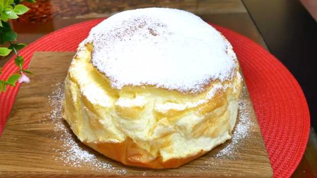Такого нежного, пышного и лёгкого пирога вы ещё не готовили! Супер-высокий, с приятной йогуртовой кислинкой — это не пирог, а восторг! Готовится легко и просто. Ингредиенты: 4 яйца; 3 ст. л. сахара; 350-400 гр. греческого йогурта; 3 ст. л. крахмала; 1 ч. л. разрыхлителя; сахарная пудра для украшения.
