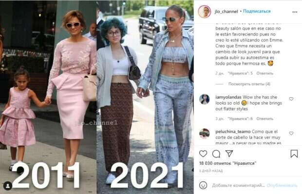 Пользователи сети в Инстаграм были очень удивлены, ведь дочь Дженнифер Лопес из милой малышки в розовых платьицах превратилась в настоящую бунтарку. Как известно, девочку никогда не считали трудным ребенком. О ней заговорили только после того, как она начала менять образы. Сейчас Эмма повзрослела и больше не носит розовые платья и милые туфельки. Во время прогулки с мамой девочка предстала с новым имиджем. Классических брюках, топике и теплой кофте. Причем главный акцент был сделан на растрепанной прическе зелено-изумрудного цвета. «Эмме так быстро растет