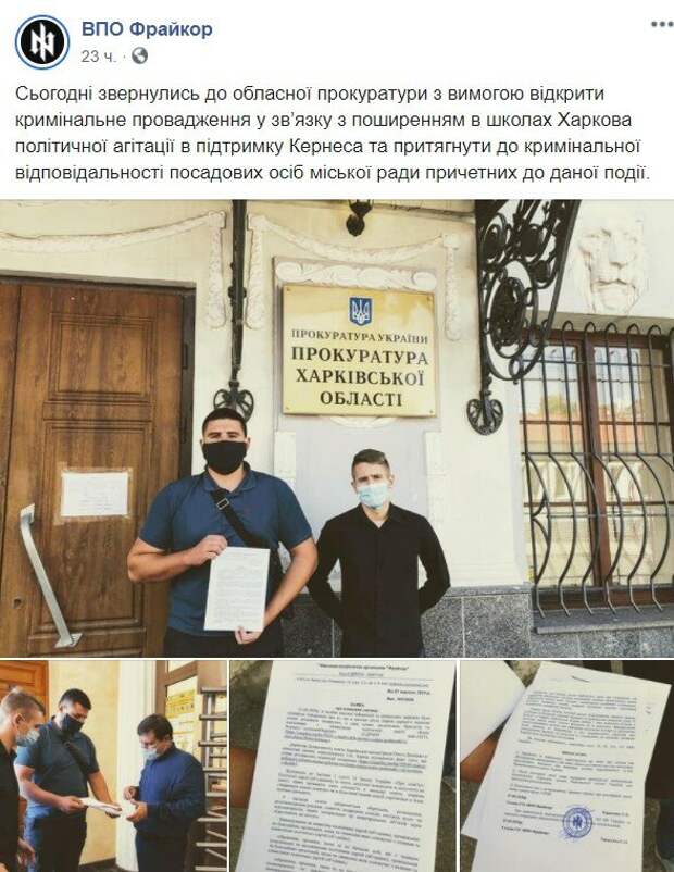 В Харькове активисты обратились в прокуратуру из-за подарков от Кернеса В прокуратуру обратились члены организации “Фрайкор” и рассказали об обращении на своей странице в Facebook. Активисты отправились в правоохранительные органы из-за подарков с символикой партии действующего мэра Харькова Геннадия Кернеса.