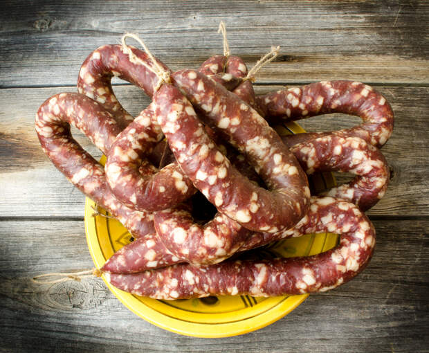 Приготовление домашней колбасы, тем более настоящей краковской, считается делом сложным и долгим. На самом деле сам процесс приготовления по правильному рецепту занимает только три часа (до этого фаршу нужно дать отстояться), а делается колбаса просто в духовке. Настоящую краковскую традиционно готовят из разных видов мяса.