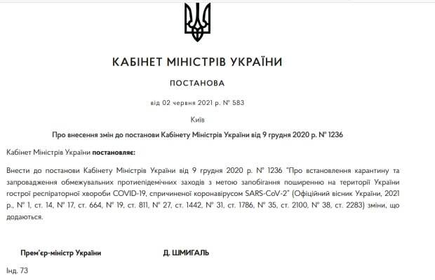 В Украине решили смягчить карантинные ограничения, которые касаются работы кафе и ресторанов, массовых мероприятий, а также правил въезда в страну Как стало известно 7 июня, соответствующее решение в своем постановлении №583 принял Кабмин. Подробности сообщил глава Минздрава Виктор Ляшко. В частности, теперь помимо ПЦР-тестов при въезде в Украину можно будет предъявлять результаты экспресс-теста на антиген или документ о вакцинации против коронавируса.
