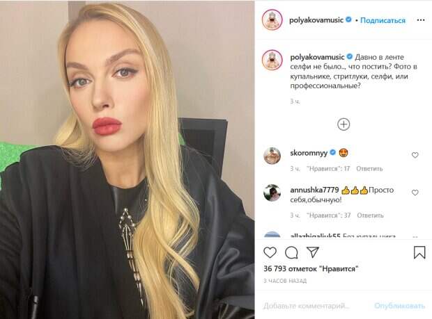 «Давно в ленте селфи не было.., что постить? Фото в купальнике, стритлуки, селфи, или профессиональные?», - поинтересовалась Полякова у своих фанатов. Поклонники тут же отреагировали на ее пост. «Без купальника голышом», «Солнце твоя красота не имеет границ, это как книга с миллионом страниц», «Губки красивые», «Выкладывайте все! Вы шикарная женщина и мы очень рады видеть абсолютно все Ваши фото», «Идеальное лицо», «Нереальная красота», «Только не так как Каменских», «Оленька, колись, ты что то сделала с личиком....? Была красоткой, а стала ещё моложе и красивее», «Что с губами, перекачаны?», - пишут люди. Ранее мы писали, что Полякова показала фото, на котором стоит на сцене в черном велюровом мини-платье с цепочкой на талии и кокетливым вырезом на ноге. Певица эффектно показала свою стройную фигуру, подтянутый живот и длинные ножки, обутые в открытые босоножки на высоком каблуке. С красиво уложенными волосами и макияжем звезда выглядит роскошно и чарующе. Напомним, Оля Полякова сразила наповал видом в коротком черном платье и цепях. Как сообщала Politeka, помолодевшую Полякову перепутали со старшей дочкой, Могилевская аж ухнула: "Хороша, чертовка!". Также Politeka писала, что безутешная Оля Полякова рассказала о большой потере, рак был беспощаден.