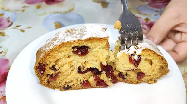 Снова перемешать. Кефирную смесь соединить с мукой. Клюкву смешать с мукой (1 ст. л.) и отправить в тесто. Форму смазать растительным маслом, перелить тесто. Выпекать кекс около 35-40 минут при 180℃, за 10 минут до готовности накрыть фольгой. Кекс с клюквой