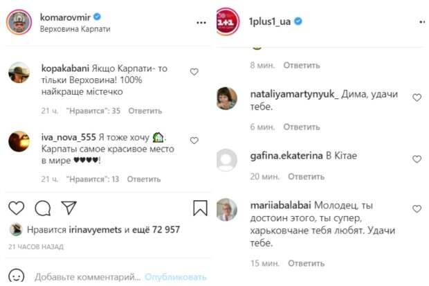 Об этом телеведущий сообщил на официальной странице канала 1+1 в Instagram. "Верховина, встречай нового соседа. Меня можно поздравить – вчера я поселился в Верховине, точнее, пока купил участок 10 соток. В следующем году надеюсь начать строить дачу. Ждите фотоотчет", - поделился ведущий в своем сообщении в Instagram. К посту он опубликовал снимок, на котором позировал в гуцульской одежде. Яркие природные краски Карпат воплотились в вышитой сорочке и кептаре. В орнаментальных узорах одежды угадываются звездное небо, карпатское солнце и весеннее буйство красок горных лугов. Фолловеры не прошли мимо, восхищаясь невероятными пейзажами и поздравляя Дмитрия в ответ: "Молодец, ты достоин этого, ты супер", "Дима, удачи тебе", "Если Карпаты - то только Верховина! 100% Лучший городок", "Карпаты самое красивое место в мире", "В Карпатах отдыхает сердце и душа, невероятные пейзажи". Напомним, Комаров из "Мир наизнанку" впервые вышел на связь после личной трагедии А еще Politeka писала, что молодая жена Комарова из "Мир наизнанку" поделилась с украинцами радостной новостью Также Politeka сообщала, что молодая жена Комарова из "Мир наизнанку" похвасталась фигурой в коротком топе