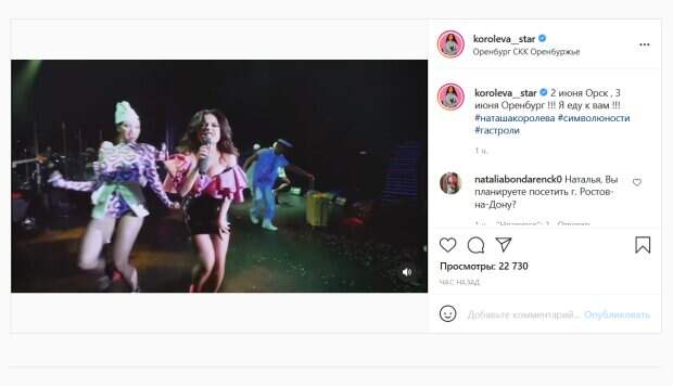 Известная певица украинского происхождения Наташа Королева показала, как зажигает на сцене в мини Как сообщает Politeka.net, артистка, которая уже много лет живет и работает в России, поделилась новым постом в своем Инстаграм. 47-летняя певица анонсировала новые выступления в городах России. При этом, она показала свои образы с предыдущих концертов.
