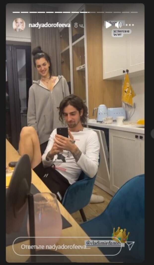 Дантес тоже зря время не терял. Музыкант принял участие в новом проекте звездных пародий "Липсинк батл", и победил в нем. А также стал одним из шести тренеров в "Лиге смеха. Битве титанов". Финал юмористического шоу состоялся 30 апреля, и Владимир со своей командой победил и тут. Теперь парочка почивают на лаврах своих побед и пересчитывают заслуги, нахваливая друг друга. На опубликованных Дорофеевой в "сториз" в Инстаграм кадрах они с супругом сидят на кухне, в домашних образах, и диву даются своим успехам, передает Politeka.net. Надя засветила интерьер просторной кухни со светлой мебелью, множеством шкафчиков и огромным деревянным столом посередине. "В семье слишком много победителей", - говорится в подписи на кадрах. "Знаете, кто это сидит?, - спросила Надя, наведя камеру на мужа. - Победитель "Лиги смеха!" "А знаете, с кем я сижу?, - спросил, в свою очередь, тот. - С победителем "Голоса". "А, ребят, тут поправочка прилетела - он еще и победитель "Липсинк батла". Это очень важно для него", - добавила, смеясь Дорофеева, подписав кадр: "Зазвездился пацан". "А, знаете, кто напротив меня еще сидит, я забыл вам добавить... Это победитель по жизни. Знаете, почему? Потому что у нее есть я! ", - Владимир рассмешил возлюбленную своей ремаркой. Напомним, муж Дорофеевой Дантес оконфузился перед украинцами, видео: "Самый нелепый пост" А еще Politeka сообщала, Дорофеева в узких лосинах заворожила видом бесконечных ног: "Нельзя пропустить" Также Politeka писала, Дорофеева показала, что сделала с кубком "Голосу країни", который не достался Виннику и Кароль: "Уже устала..."