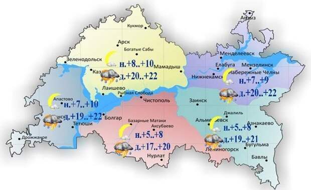 В четверг, 30 июня, в Татарстане прогнозируется переменная облачность. Днем местами кратковременный дождь, гроза. Максимальная температура воздуха днем в Татарстане составит от +17 до +22 градусов. В Казани ожидается от +20°С до +22°С. В Набережных Челнах синоптики прогнозируют от +20 до +22 градусов.