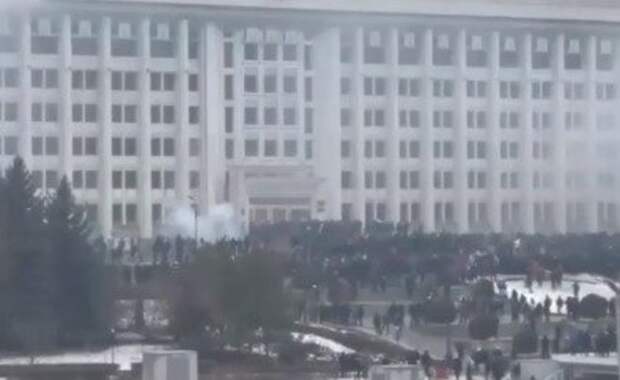 Протестующие взяли штурмом здание администрации Алматы в Казахстане, сообщает Sputnik Казахстан. В здании находилась полиция полиция, она использовала светошумовые гранаты. У протестующих тоже были светошумовые гранаты, а еще щиты и палки. Корреспонденты сообщили, что в районе мэрии Алма-Аты, которую штурмуют протестующие, слышны выстрелы, а над зданием поднимается черный дым.
