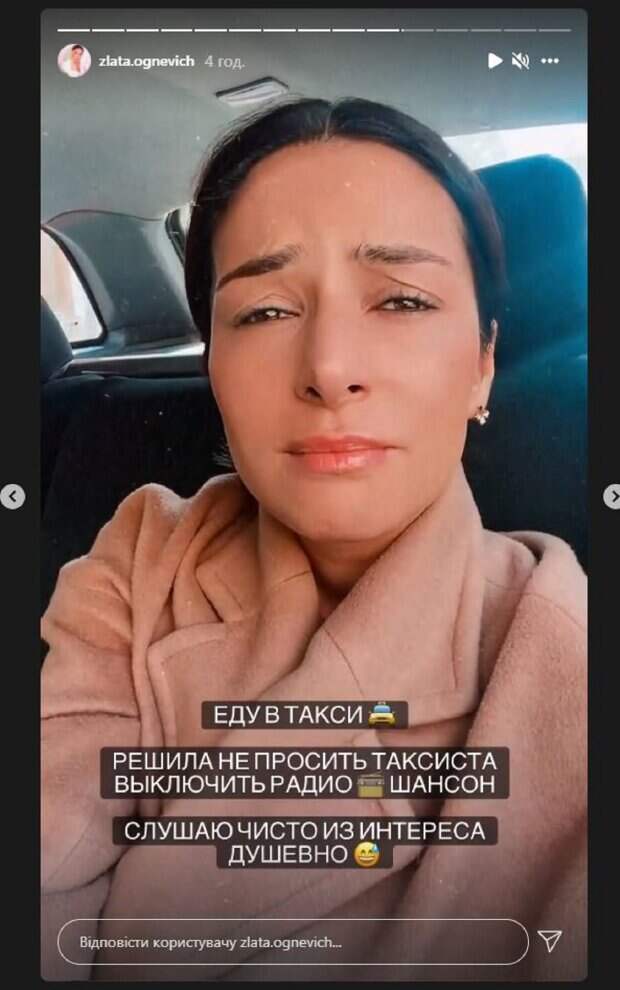 На новом сторис Злата сидела в такси. Как оказалось, звезда слушала шансон, которій включил таксист. "Еду в такси. Решила не просить таксиста віключить радио-шансон. Слушаю чисто из интереса, душевно", - написала Злата. "Сторис о шансоне я выгрузила не просто так. Немногие из вас знают, что в 14 лет я работала певицей в ресторане. Это было в Крыму и можете себе представить, какое огромное количество туристов приезжало к нам в гости летом со всего СНГ. Ну и конечно же у нас была та самая публика, которая любила слушать и заказывать шансон. Я отказывалась петь эти песни и из-за этого гораздо меньше зарабатывала чем другие певцы в ресторанах. Но зато я получала наслаждение на сцене от той музыки, которую я пою", - рассказала историю Огневич. Напомним, Винценцо из "Холостячки" открылся перед Огневич, рассказав о семейной драме А еще Politeka сообщала, что «Холостячка» Огневич поразила необычным признанием Также Politeka писала, что "Холостячка" Огневич "врезала" своим обидчикам после волны критики