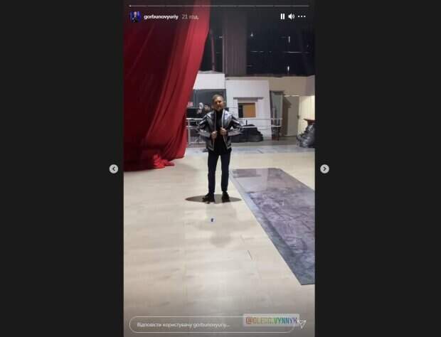 Горбунов примерил пиджак Олега Винника, обильно украшенный мелкими стразами. "Посмотри, как светится. Олег клеил всю ночь", - слышен за кадром голос жены Горбунова Кати Осадчей. Похоже, что именно она и снимала видео. «Хотя бы три минуты... почувствовать себя...», - поделился своими впечатлениями телеведущий. «Даже не знаю, сколько тысяч там этих Сваровски», - отметил Виннник. «И что мне Сваровски, мне сам факт», - сказал Горбунов и начал петь песню Винника «Роксолана». Напомним, 25 апреля прошел суперфинал шоу «Голос страны. Перезагрузка». Победителем стал участник команды Нади Дорофеевой-Сергей Лазановский. Ранее на этапе нокаутов певец покидал проект, но благодаря нововведениям, зрители смогли вернуть его в шоу путем голосования. Надя Дорофеева в 11 сезоне впервые стала самостоятельным тренером «взрослого» "Голоса". Напомним, что Олег Винник едва сдержал слезы из-за потери участницы "Голоса страны", закулисное видео: "больно..." Как сообщала Politeka, "тайную жену" Олега Винника сняли в обнимку с Горбуновым: "Фото заряжено на позитив" Также Politeka писала, что Осадчая в платье королевы показала украинцам округлившийся животик: "Катя и Юра молодцы!"