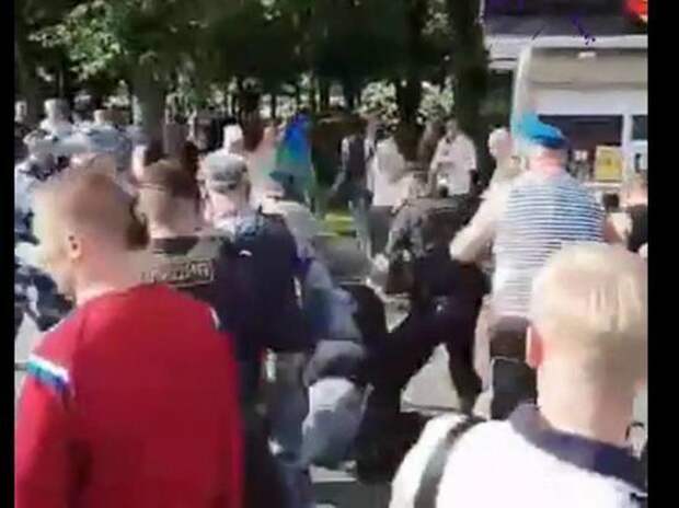 В Москве в Парке Горького во время празднования Дня ВДВ произошел инцидент. Десантники бросились в драку с сотрудниками Росгвардии, которые поддерживали порядок на мероприятии. Фото: Кадр из видео Из-за чего произошел конфликт пока непонятно, Судя по видеозаписи, которая появилась в телеграм-канале Readovka, группа десантников стояла напротив росгвардейцев.
