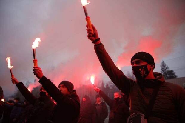В Киеве около сотни штурмовиков собрались у посольства РФ на акцию, приуроченную ко дню памяти жертв т.н. «голодомора» – голода 1932-33 годов в УССР, который нынешняя государственная пропаганда трактует как «геноцид украинского народа» с целью истребления желавших выхода из Советского Союза. Основным организатором мероприятия выступила политическое крыло неонацистского полка «Азов» – группировка «Национальный корпус», передаёт корреспондент «ПолитНавигатора».