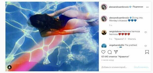 Звезда опубликовала жаркие фото в мини-бикини, которое выделило ее шикарные формы. Лифчик обтянул сочную грудь знаменитости и натянулся на тончайших бретельках. Крохотные плавки держались по бокам на завязочках, придающих пикантности образу. Алессандра устроила фотоссесию в бассейне ее шикарное тело было мокрое и красиво поблескивало на свету. Модель растянулась в воде на одном из фото. Она легла на спину и закрыла глаза. Снимки просто будоражили сознания фантов и за несколько часов они собрали более 100 тысяч лайков и много приятных комментариев. Пользователи сети восхищались достоинствами модели, отмечая ее шикарные формы. "Красотка неимоверная", - написал один из подписчиков. Ранее сообщалось, что Алессандра Амбросио показалась в синем купальнике. Красотка находилась в воде и плыла, демонстрируя на камеру спину и пятую точку. Звезда не стеснялась демонстрировать свое аппетитное тело, восхищая видом сверху. "Погрузитесь в блюз понедельника", - написала модель. Ранее сообщалось, что Алессандра Амбросио предстала в белом топике на тонких лямках. Небольшая грудь смотрелась в нем просто прекрасно. А тонкая талия и упругий пресс - тоже стоят того, что ими любоваться. Звезда забрала волосы в пучок и встала в пикантную позу. Модель опустилась на четвереньки и оперлась о локти. Напомним, супермодель и ангел Victoria’s Secret часто показывает фанатам свою фигуру Как ранее сообщала Politeka, Алессандра Амбросио похвасталась упругим телом без одежды: можно смотреть вечно Также Politeka информировала, что самый горячий ангел Victoria’s Secret показала упругий «орешек» в невидимом наряде: «о таком мечтают все»