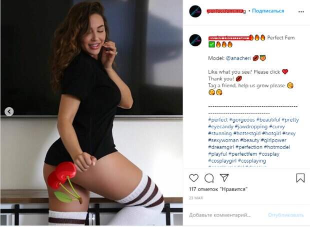 Когда Ана поправляется, то также не комплексует по этому поводу. При этом девушка снимается в пикантных фотосессиях, чтобы прорекламировать свою коллекцию спортивной одежды или же наряды своих коллег. Специально для такого случая Ана примерила лишь спортивную черную футболку и высокие белые гольфы, доходящие аж до середины бедер. При этом девушка соблазнительно приподняла ногу, чтобы показать и сами гольфы из натуральной ткани, и ягодицы, которыми так гордится. Вот как реагируют фанаты: «Ооо, это идеальный персик